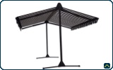 OMBRAMOBIL je samostatně stojící dvojitá clona, která zajišťuje zastínění velkých ploch a chrání také proti dešti. Stojiny umístěné po stranách clony nenarušují prostor krytý touto clonou (lepší než u slunečníků). OMBRAMOBIL má široké využití, například v restauračních provozech, při slavnostních příležitostech, jako obchodní stánky, kryté stání automobilů a posezení na zahradách rodinných domů. Standardní provedení stojin je typ A, případně je možné dodat stojiny s příčným profilem nebo stojinu s patkou k zabetonování. OMBRAMOBIL je možné ponechat volně v přírodě i v době mimo sezónu, jelikož látka je chráněna v kastlíku. Standardní ovládání je zajištěno pomocí klikového mechanismu, případně motorem.