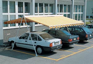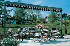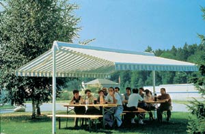 OMBRAMOBIL je samostatně stojící dvojitá clona, která zajišťuje zastínění velkých ploch a chrání také proti dešti. Stojiny umístěné po stranách clony nenarušují prostor krytý touto clonou (lepší než u slunečníků). OMBRAMOBIL má široké využití, například v restauračních provozech, při slavnostních příležitostech, jako obchodní stánky, kryté stání automobilů a posezení na zahradách rodinných domů. Standardní provedení stojin je typ A, případně je možné dodat stojiny s příčným profilem nebo stojinu s patkou k zabetonování. OMBRAMOBIL je možné ponechat volně v přírodě i v době mimo sezónu, jelikož látka je chráněna v kastlíku. Standardní ovládání je zajištěno pomocí klikového mechanismu, případně motorem.