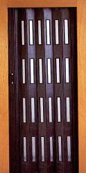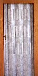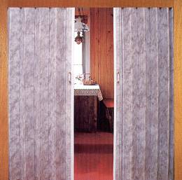 Základním materiálem je koženka, kterou jsou potaženy sololitové lamely. Dobrou funkci dveří zajišťuje eloxovaná hliníková pojezdová lišta s jezdci z umělé hmoty a prvním širokým jezdcem (vahadlem).