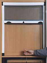Samonavíjecí síť je možno, v době kdy ji nepotřebujeme, vytáhnout do kastlíku. Je tím docíleno mnohem větší životnosti. Síťovina je vyrobena z poplastovaného sklolaminátového vlákna. Je dodávána v šedé barvě a je prakticky neviditelná. Vodící lišty s kastlíkem jsou standardně dodávány v barvě bílé a hnědé. V případě požadavku je možno dodat v barvě RAL. V případě odsazení sítě od výplně je možnost dodat vynášecí úhelník 40 x 20 mm.